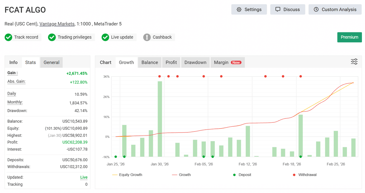 Transparent, verified, and updated trading results tracked with MyFXBook.
